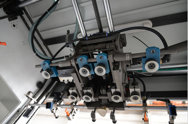 Увезен ланец на бар -ленти. Уред за заклучување на пневматски мувла. Висока цврстина и сила титаниум алуминиумски прицврстувач. Точен уред за прилагодување на притисокот. PLC и човечки машински интерфејс од Тајван.