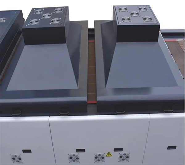 (2) УВ-делот усвојува електронски извор на светлина од 8-12kW, кој има значително подобрени безбедносни перформанси од традиционалниот извор на светлина на изворот на напон. Изворот на светлина може автоматски да ја прилагоди осветленоста како промена на брзината на извршување на машината, што може да се промени од 30% на 100%. Така, просечната потрошувачка на енергија е заштедена за повеќе од 30%.
