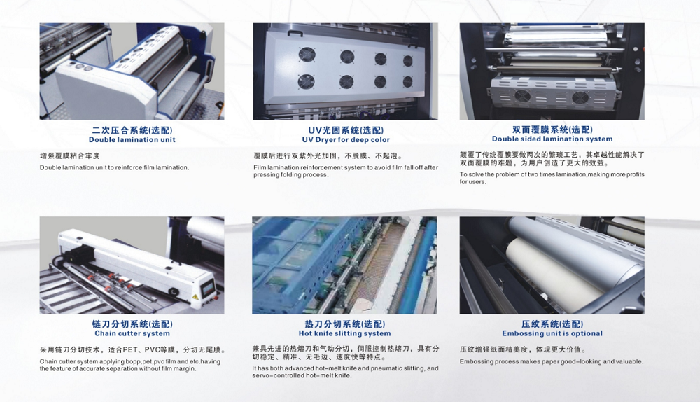 Нова Starвезда има различни термички ламинирачки машини што можат да се користат во пакување, книги, рекламирање, уметност и други полиња. Нашата опрема ја користи најновата технологија и нема да има пукнатини, бели дамки, грубост и други феномени што ги имаат обичните машини за ламинирање. Покрај тоа, нашите машини за ламинирање имаат исклучителен изглед и компактен аранжман, а исто така ги задоволуваат потребите на висока ефикасност на производството. Добредојдовте да ги набавите производите на Spot за да го добиете најдоброто решение